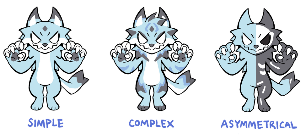 Can also include a unique hair style or external features such as horns or spikesAsymmetrical: Case dependent but any amount of asymmetrical markings can be done (this also includes 2 different handpaws or a split in half design)(DISCLAIMER: this is only a guide for customers to gauge their design, there will be variation in how much is added to the base price depending on the character)